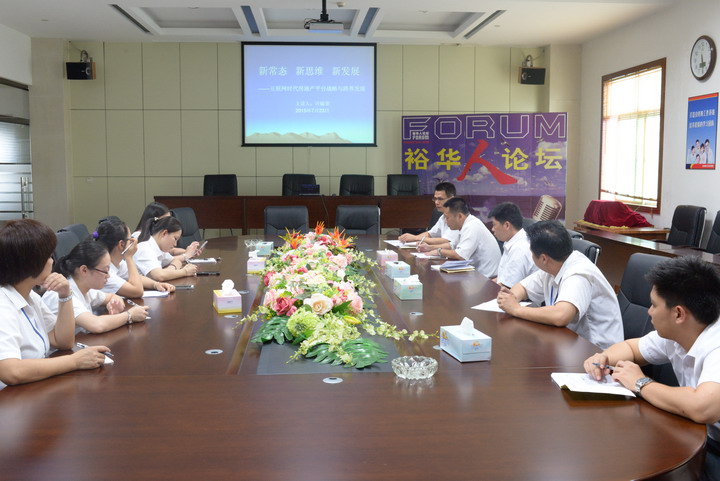 7月24日,集團公司綜合辦在集團八樓大會(huì )議室,舉行了一次題為“新常態(tài) 新思維 新發(fā)展—互聯(lián)網(wǎng)時(shí)代房地產(chǎn)平臺戰略與跨界發(fā)展”的季度學(xué)習。
