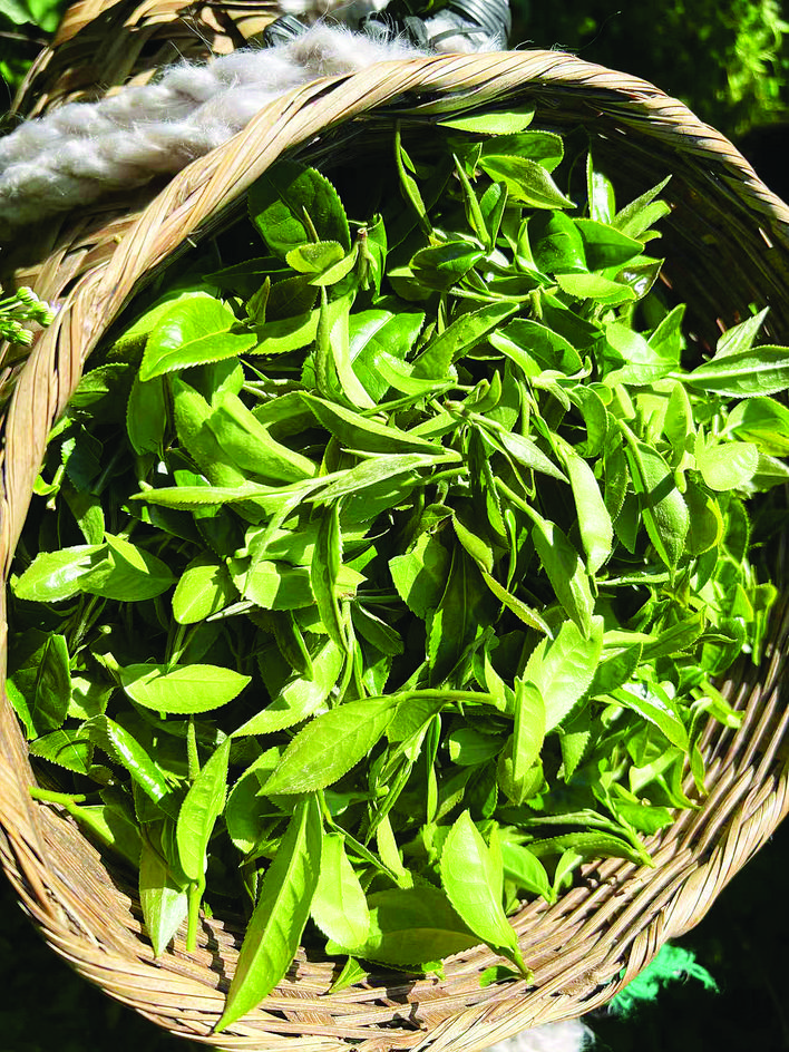 經(jīng)過(guò)一整個(gè)冬天的休眠和養分積累,茶葉里的有機物質(zhì)十分充足,加之春季溫度適中,雨量充分,使得春季茶芽肥碩。10多名茶農提著(zhù)茶簍,在茶田間雙手翻飛采摘嫩綠的葉尖。時(shí)下正值蝴蝶紛飛的季節,絢麗的蝴蝶在一旁“伴舞”,宛如一幅優(yōu)美的生態(tài)風(fēng)光畫(huà)卷。
