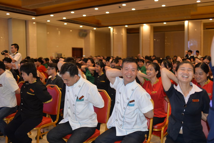 2015年8月7日,裕華酒店特邀請當地宣教辦老師為全體員工上了一節生動(dòng)的健康課。課上老師針對職場(chǎng)中常見(jiàn)的幾種職業(yè)病做了系統的分析,并傳授大家預防和治療的方法。期間老師還不時(shí)與員工穿插一些小互動(dòng),讓大家親身體驗所講方法的作用。