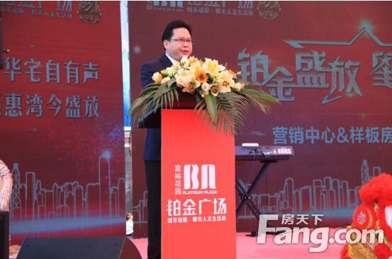 上午10點(diǎn),在氣勢不凡的龍鼓舞表演之后,主持人宣布盛典正式開(kāi)始。鉑金廣場(chǎng)開(kāi)發(fā)商裕華集團副總經(jīng)理劉軍先生致辭,對所有來(lái)自深惠的嘉賓朋友表達了熱烈的歡迎和誠摯的謝意,為惠灣再造一個(gè)值得珍藏的城央都芯地標。