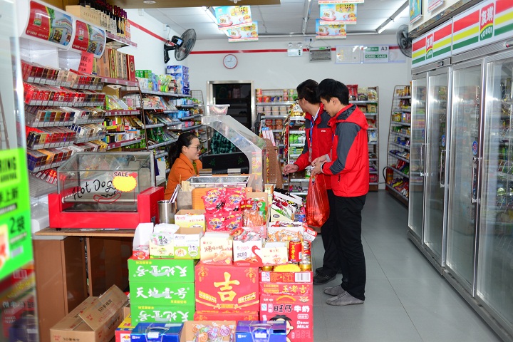 儀式接近尾聲時(shí),第七分店全體店員分成幾路,向附近的店鋪、物業(yè)工作人員派發(fā)喜糖,感謝大家的支持,并邀請大家有空常走動(dòng),共建和諧好睦鄰。