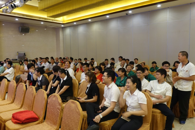 8月23日下午,裕華集團邀請三和醫院康復科陳健平教授,到酒店現場(chǎng)為各成員公司員工,講解服務(wù)行業(yè)的常見(jiàn)勞損健康問(wèn)題。